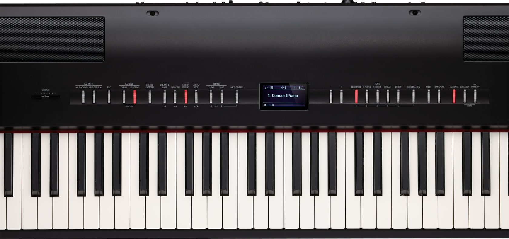 Motor de som de Piano SuperNATURAL incorporado; Teclado Ivory Feel-G com Escapement; Sistema de som de quatro altifalantes com tecnologia de projeção acústica; Funcionalidade de ritmos inteligentes com reconhecimento de acordes de teclado completo; A função Chord Pattern proporciona sequências de acordes de reprodução automática para praticar e improvisar; 90 tipos de ritmos, com duas variações para cada estilo; Entrada para microfone e efeito de harmonia;