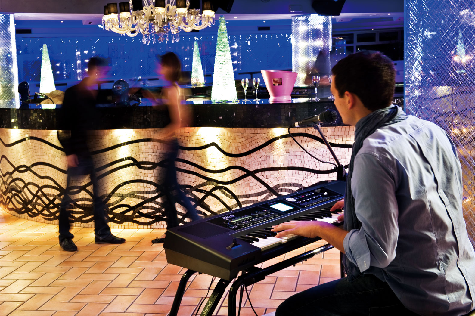 - Solução completa para entretenimento musical, com acompanhamentos automáticos e sistema de som integrado
